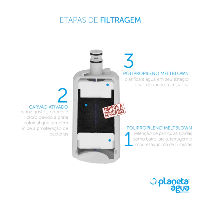 - Retém barro, areia, ferrugem e outras partículas acima de 5 micras