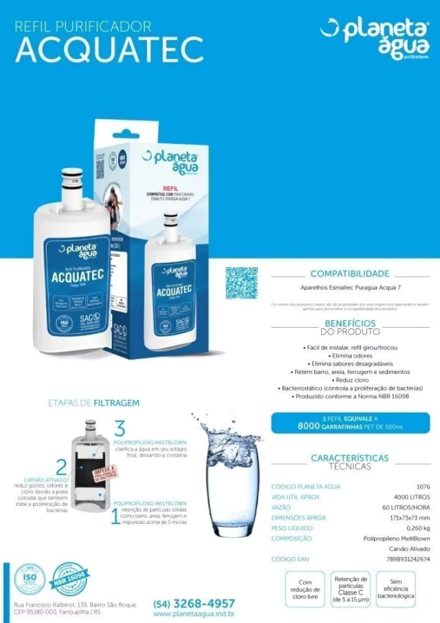 Este refil é compatível com o aparelho Esmaltec Puragua Acqua 7.